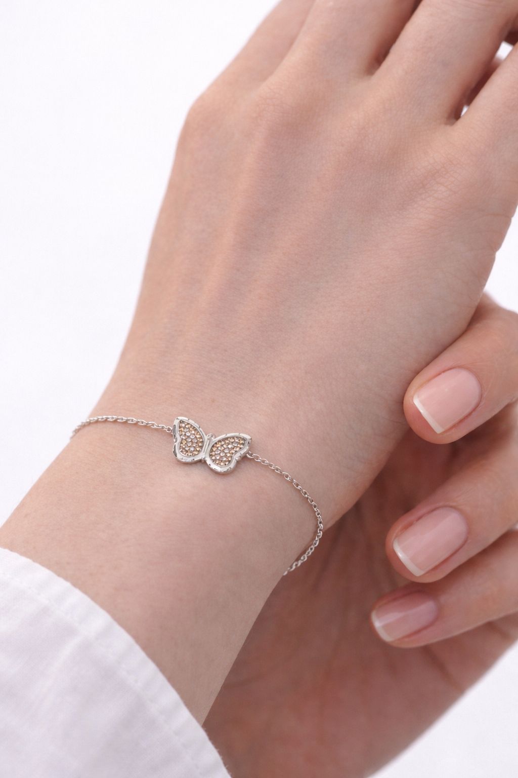 Ce bracelet fin en argent met en scène un papillon délicatement ajouré, symbole de légèreté et de transformation.